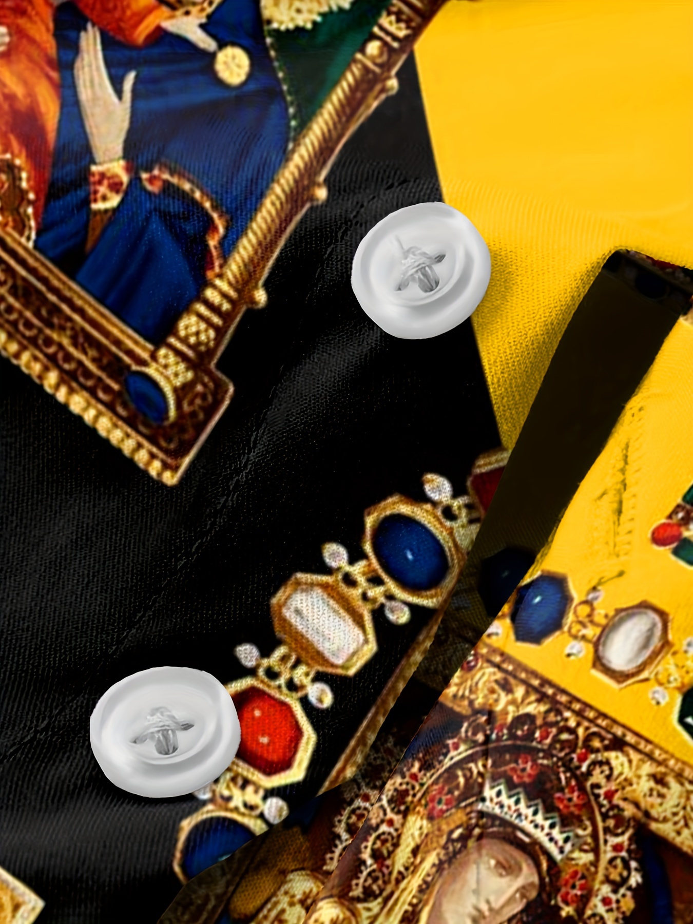 The richness of the colour is outstanding. The buttons are white and need replaced but the fabric and colour-way is excellent, with no bleeding during washing.