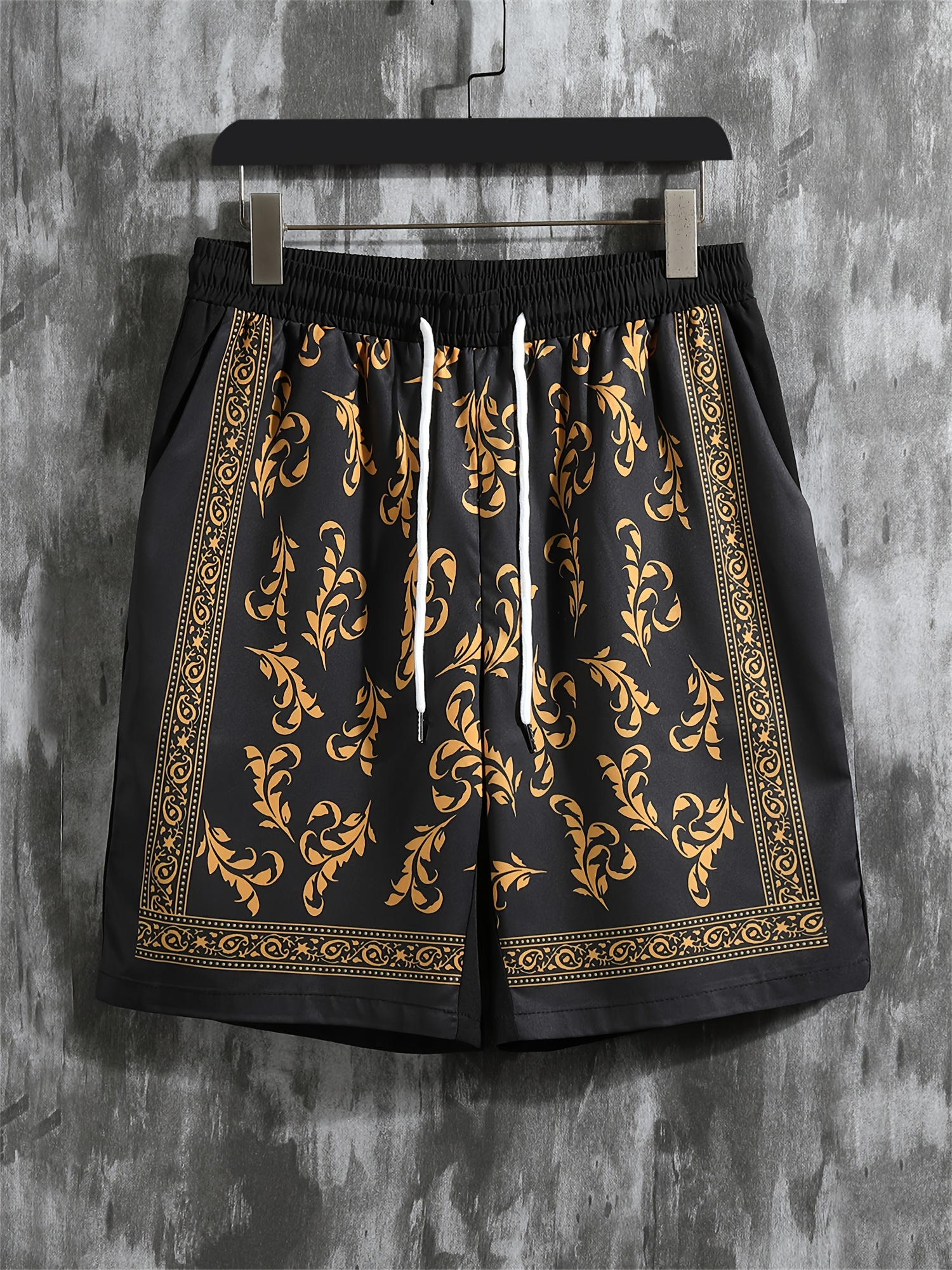 Grandiose Short-Sleeve Shirt with Plant Patterns And Solid Color Shorts Set