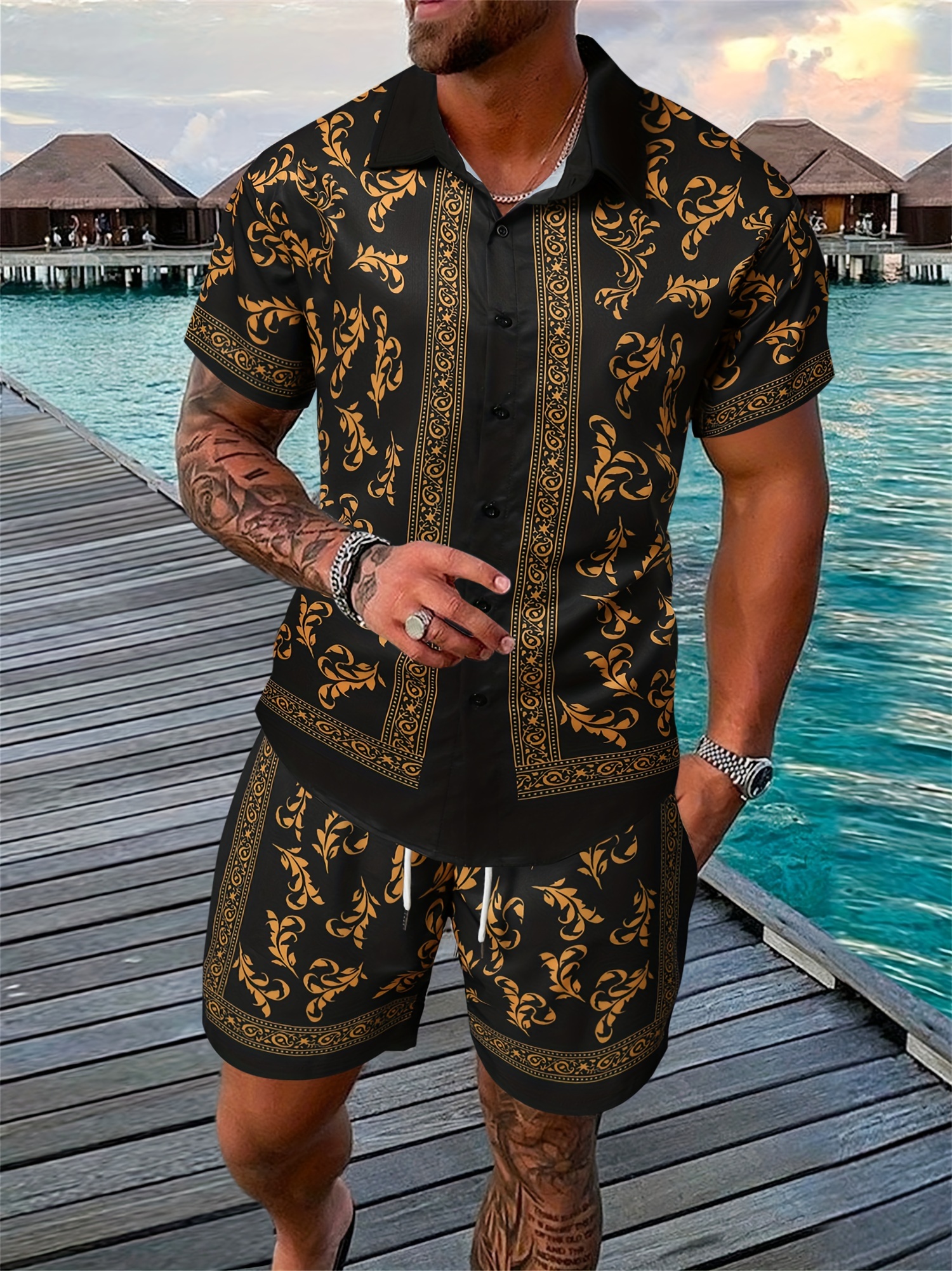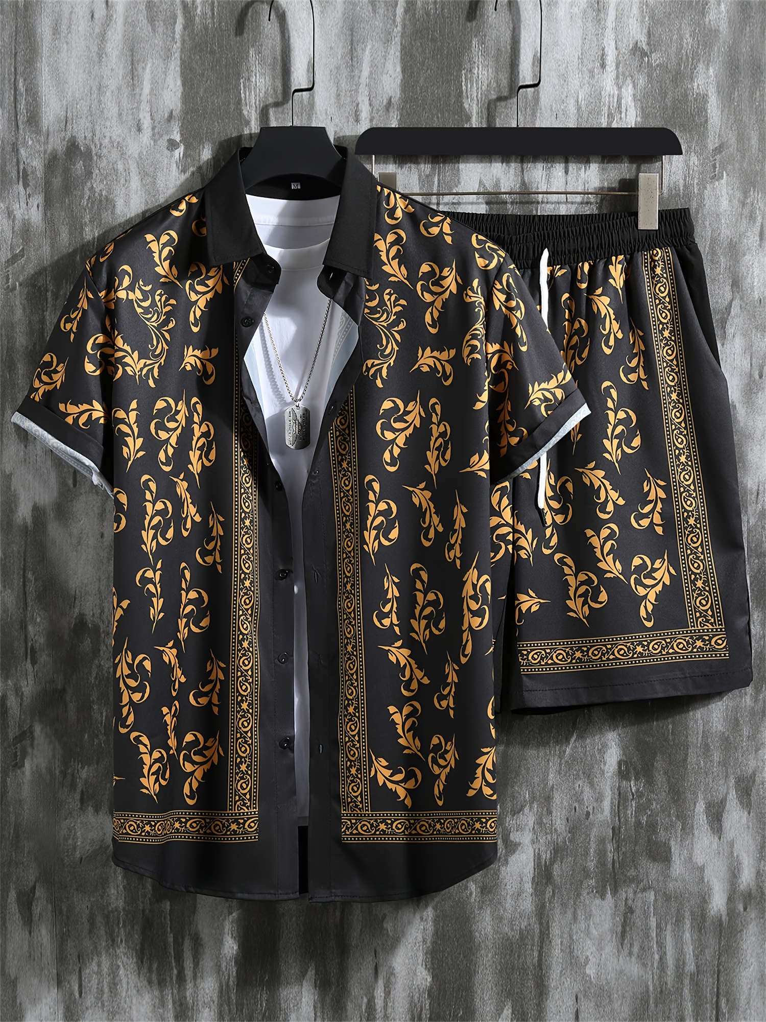 4 reviews for Grandiose Short-Sleeve Shirt with Plant Patterns And Solid Color Shorts Set