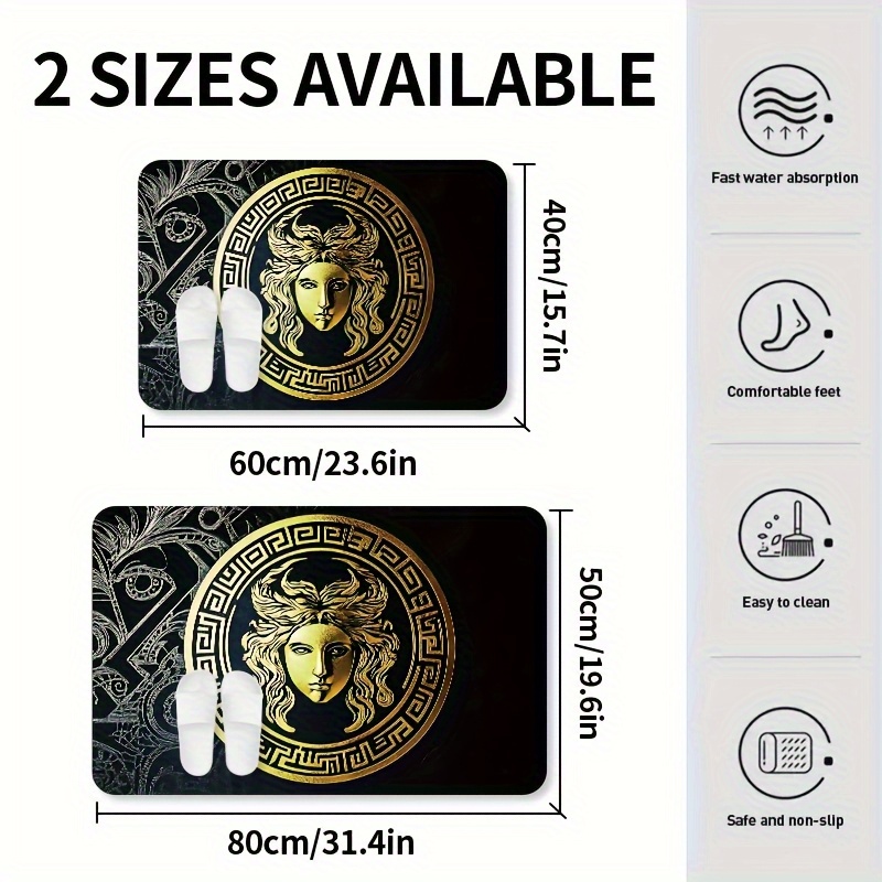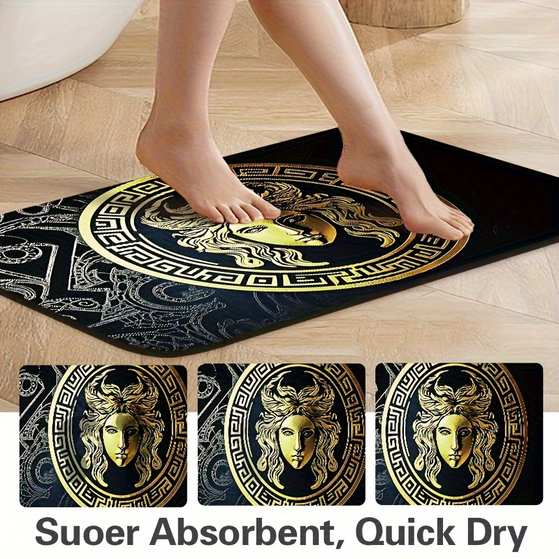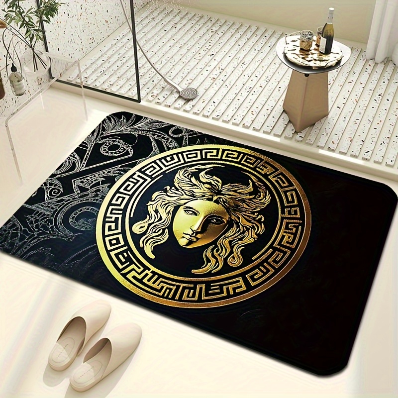 Greek Key & Medusa Pattern Quick-Dry Anti-Slip Bath Mat