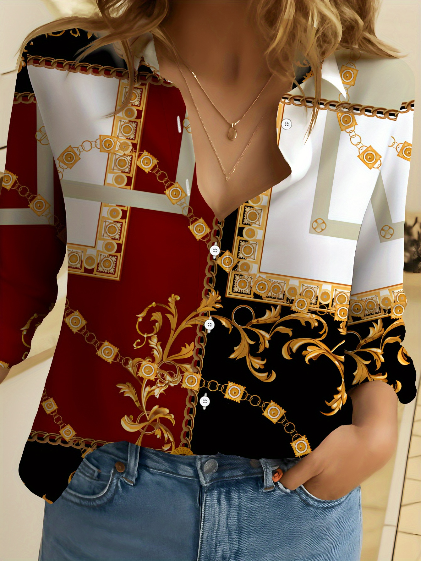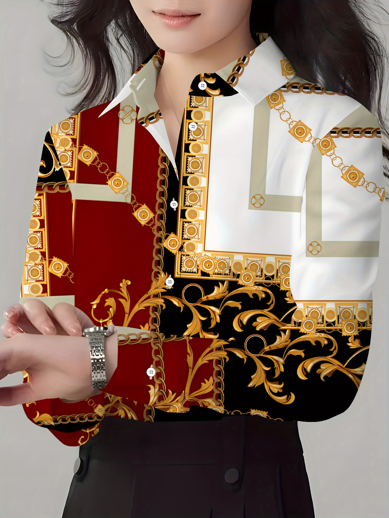 Ladies’ Long-Sleeve Shirt Floral Luxurious Pattern